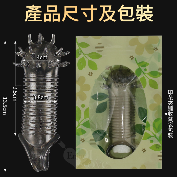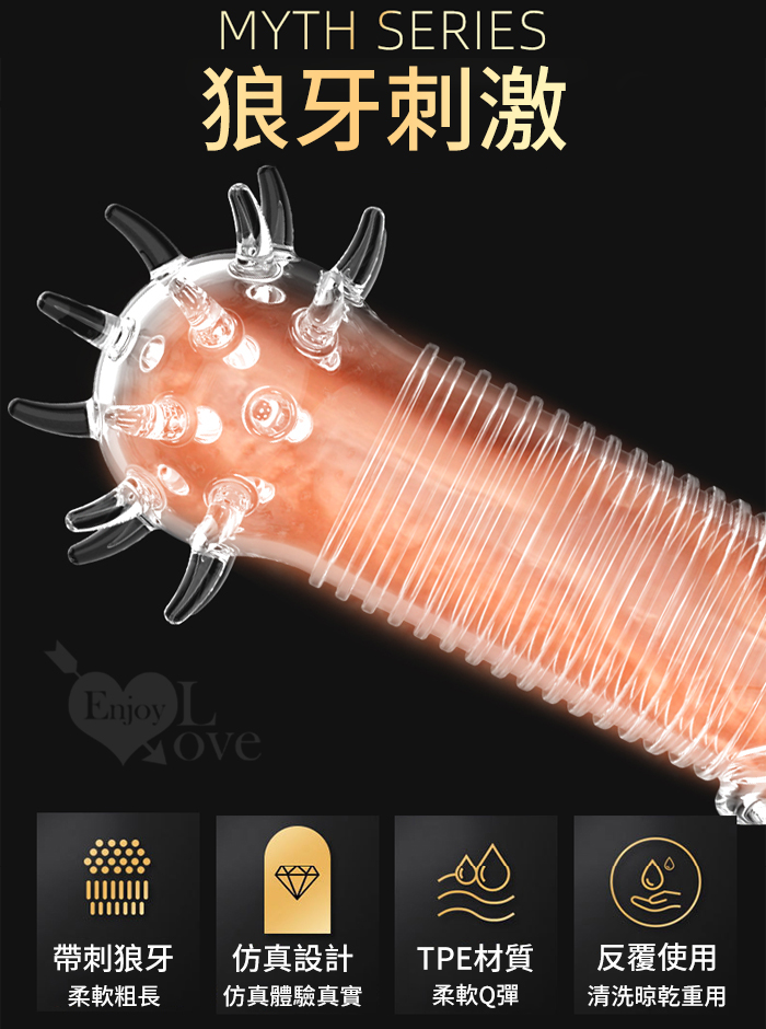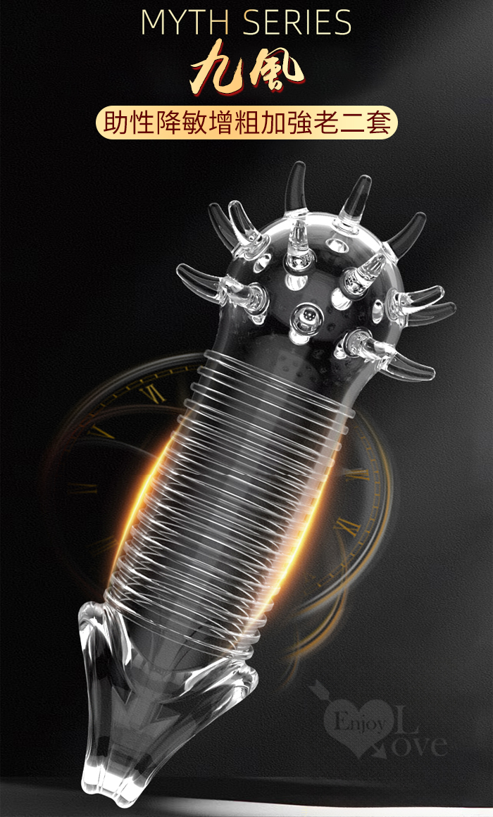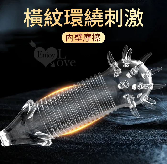 Enjoy Love ‧ 九風!助性降敏增粗加強老二套﹝狼牙肉刺+橫紋刺激﹞透明黑
