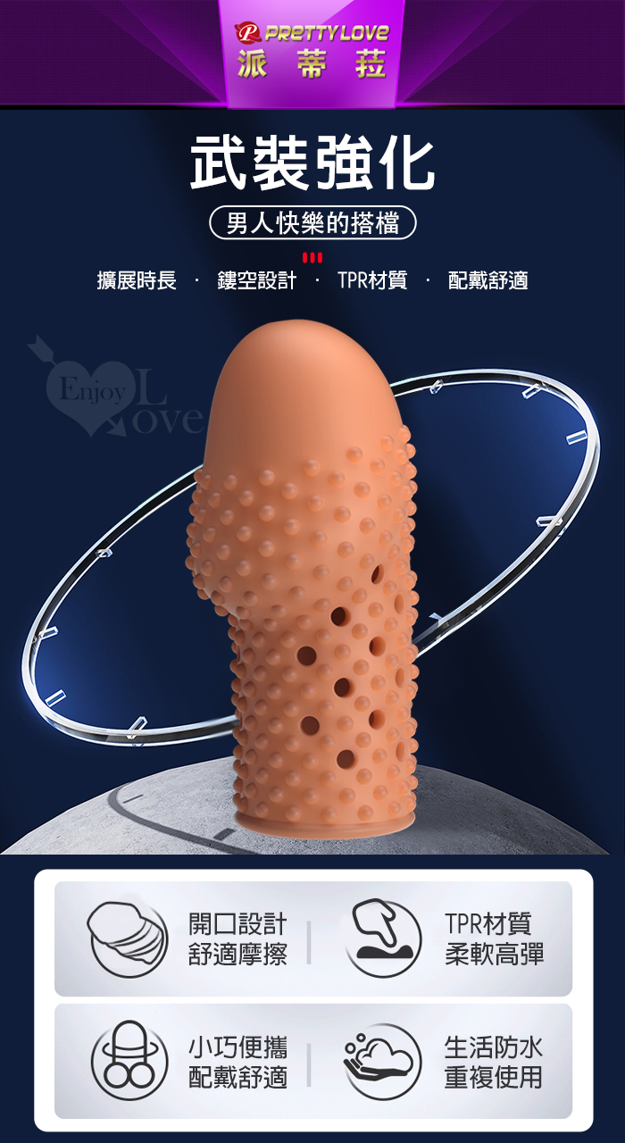 派蒂菈 ‧ HUEL 休爾 凹凸直線螺紋刺激/隱身/持久/武裝強化老二造型套 - 頭部出精口設計