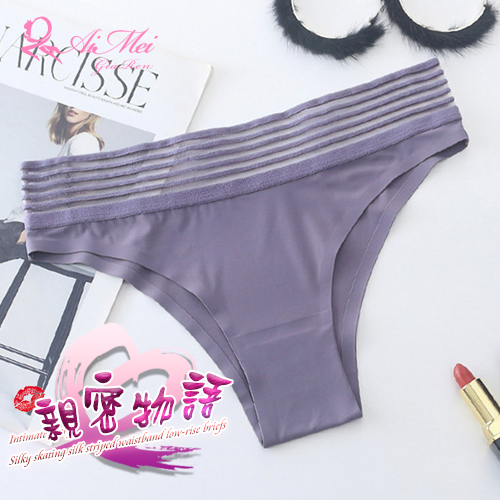 | 親密物語!絲滑冰絲條紋褲頭低腰三角褲﹝藕紫﹞