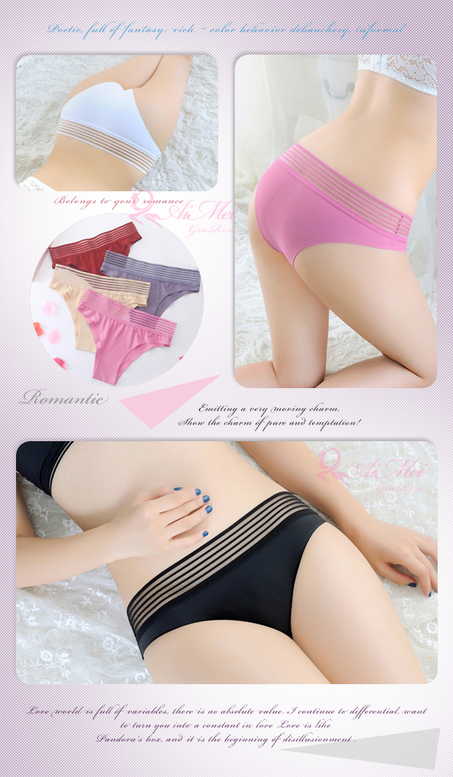 ►您現在的位置:首頁>親密物語!絲滑冰絲條紋褲頭低腰三角褲﹝藕紫﹞