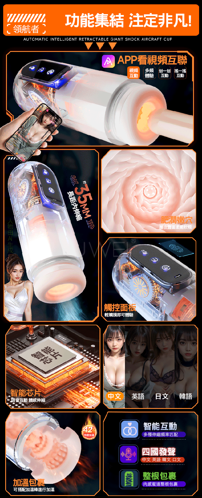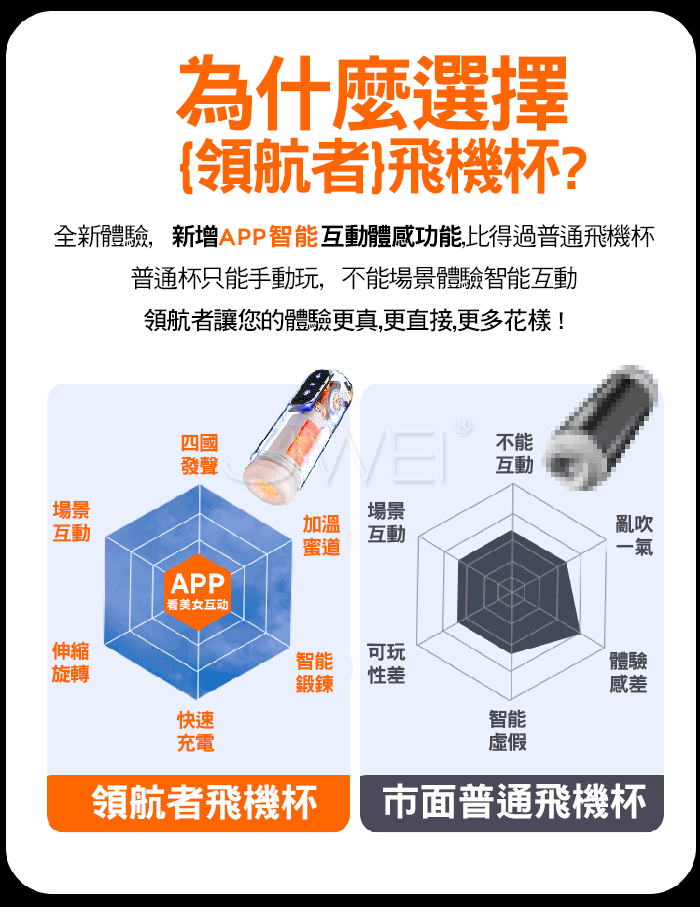 領航者. 6頻長距伸縮旋轉 四國女優叫床 APP智能互動電動飛機杯