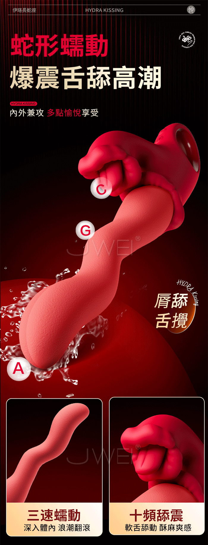 | EROCOME伊珞.HYDRA Kissing 長蛇座接吻 3速蛇型蠕動+10頻舌攪舔震按摩棒