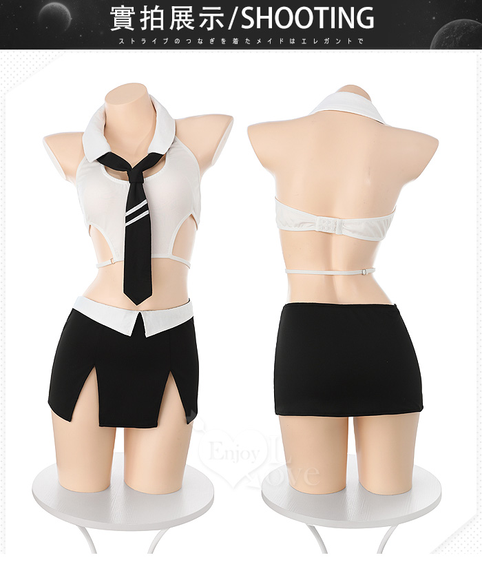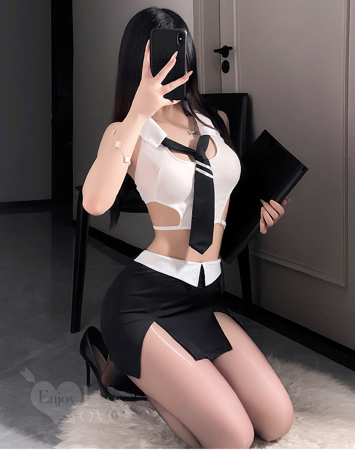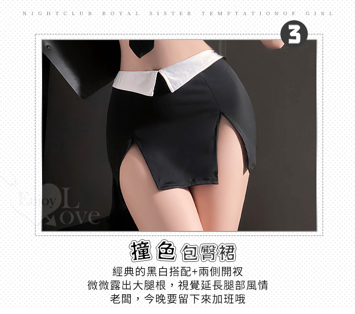 | 秘書角色扮演服!細帶露腰短上衣撞色雙開衩包臀裙四件式套裝