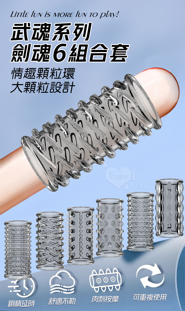 ►您現在的位置:首頁>武魂系列.劍魂六組合套~顆粒入珠肉刺環繞鎖精延時陰莖加強環~成人性趣輔助用品-6款體驗裝﹝透明黑﹞