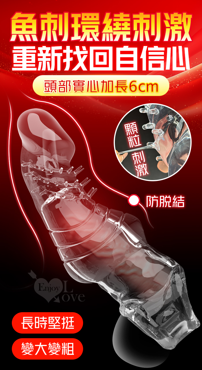 取悅 ‧ 鱼刺套 顆粒刺激~長時堅挺~前端實心變粗變大加強套﹝增長6公分+凸粗+束精+套蛋﹞