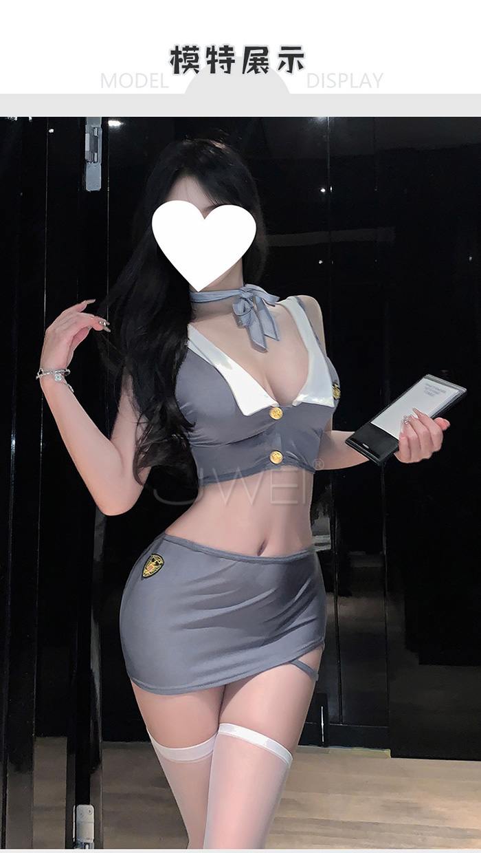 | 空姐角色扮演服!一字裸肩綁帶交叉束身鏤空玉體六件式套裝