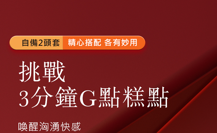 自備2頭套,精心搭配各有妙用,挑戰3分鐘G點糕點,喚醒洶湧快感。