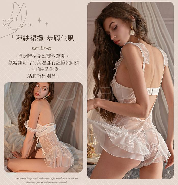 ►您現在的位置:首頁>慾情薔薇.蕾絲深V美肩露背花蔓透紗開襠連體衣【黑色】