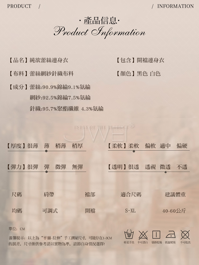 2.基於保障消費者個人衛生,情趣衣物類恕不接受退換貨,如為商品本身暇疵,接受三日內換貨,請勿試穿。