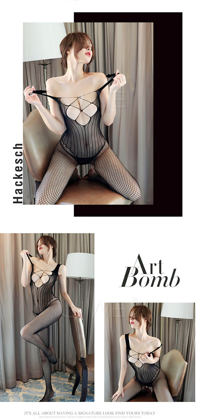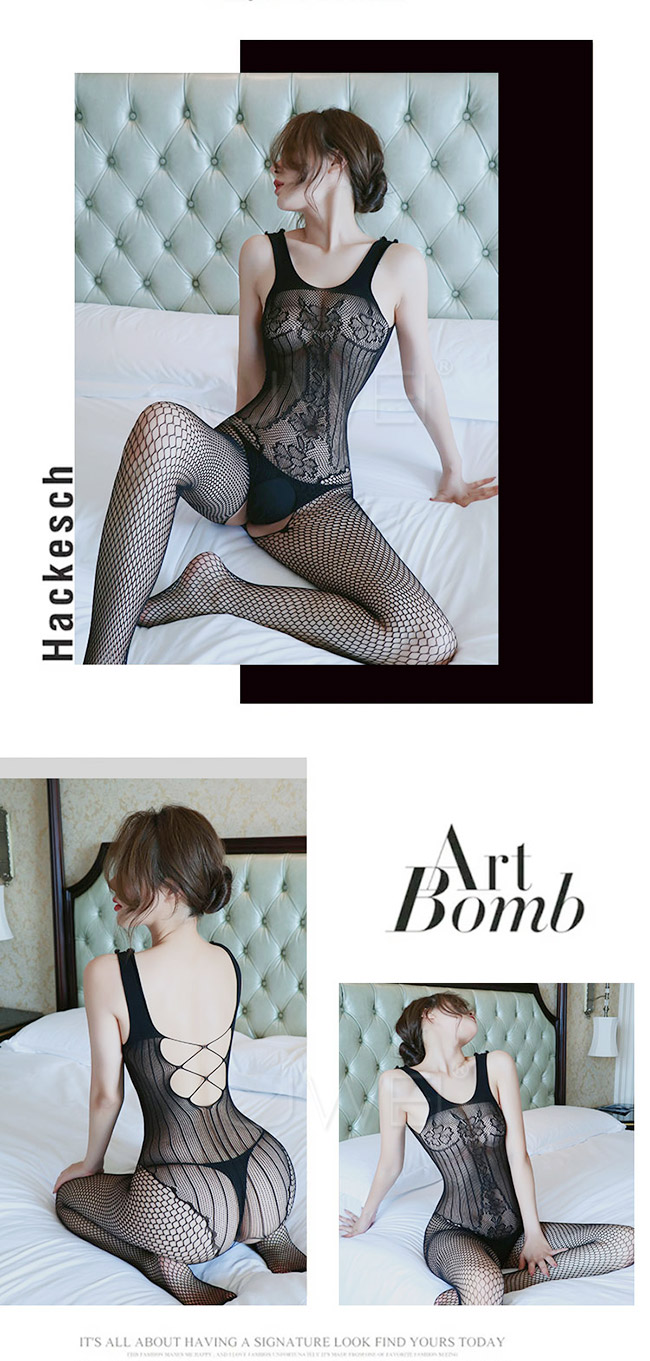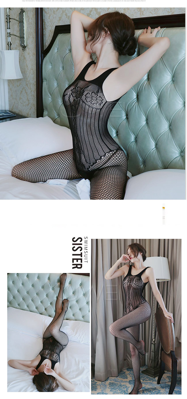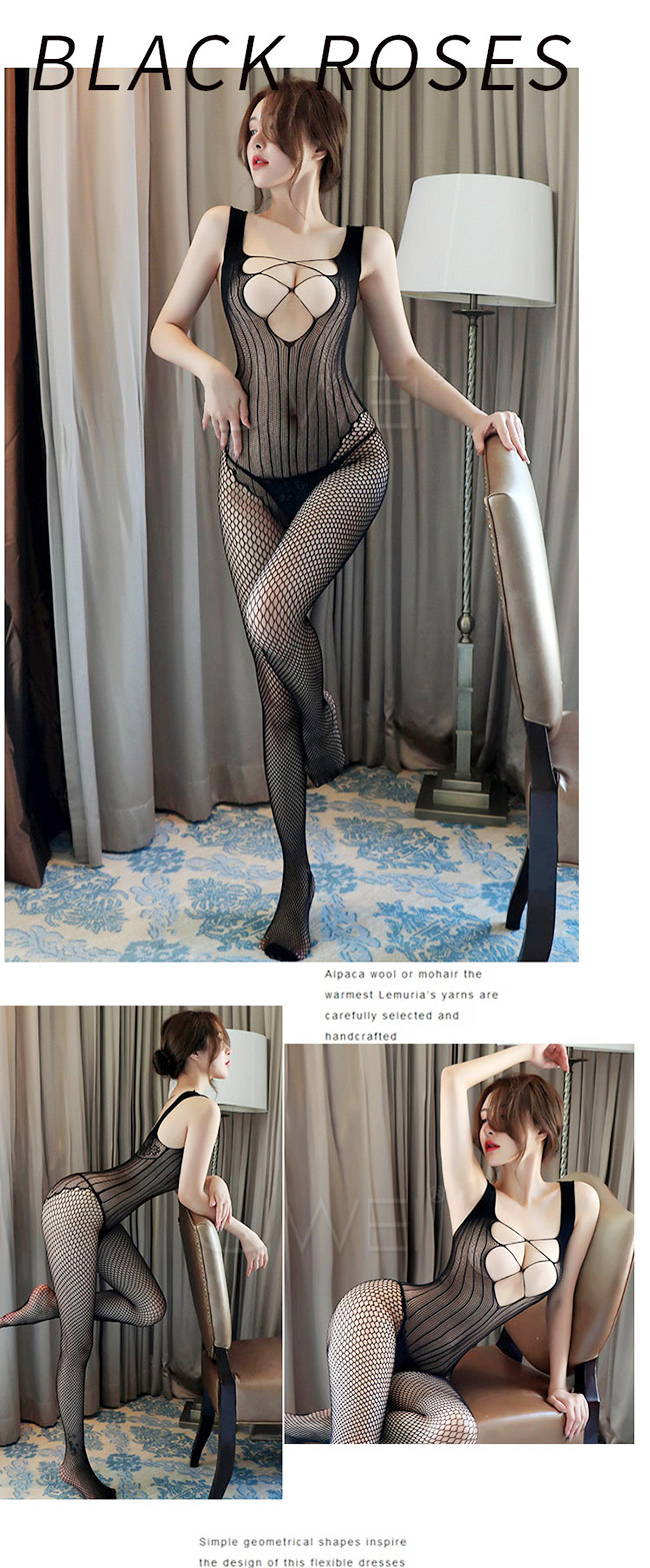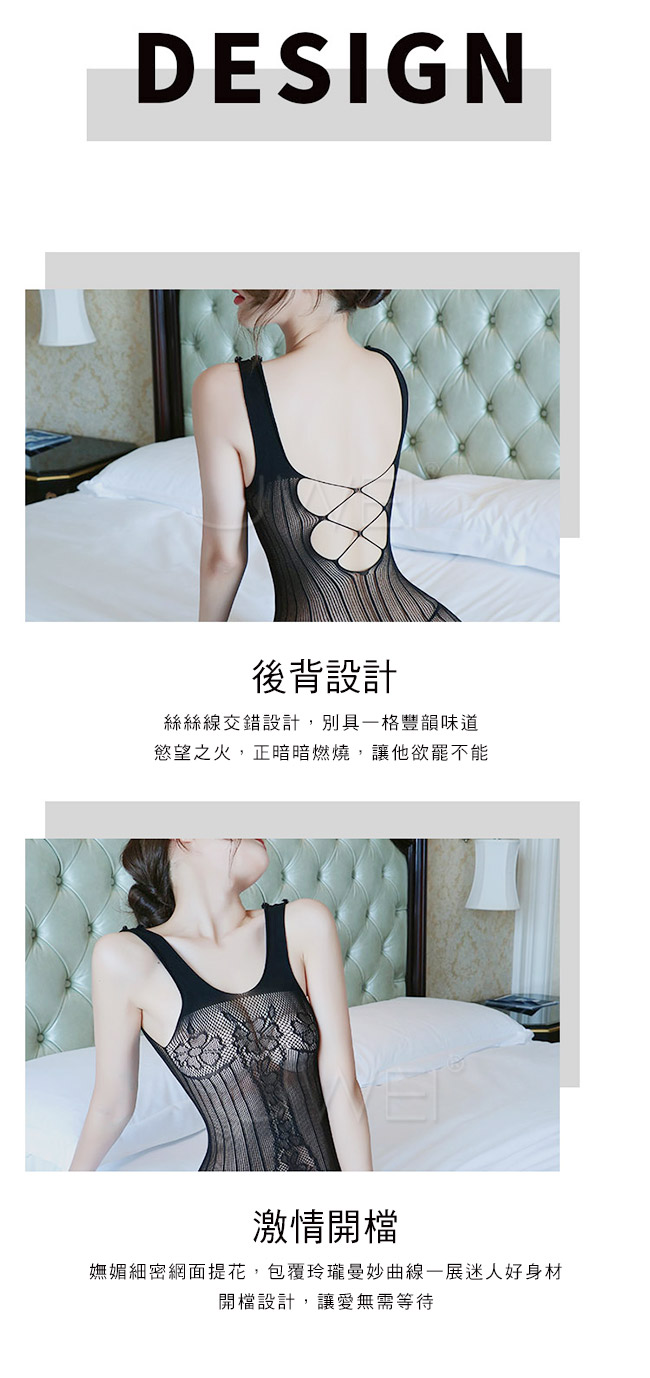 ◇◆迷離微醺.性感胸前交織鏤空提花激情開襠連身貓裝◆◇