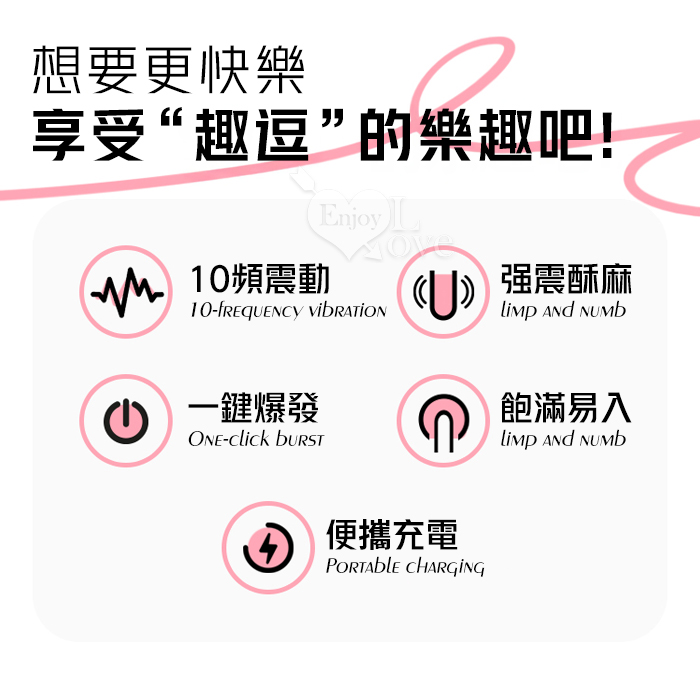 ROSELEX 勞樂斯 ‧ 趣逗棒 10段高頻震智能加溫按摩棒 強震/酥麻/輕巧/隱蔽-粉