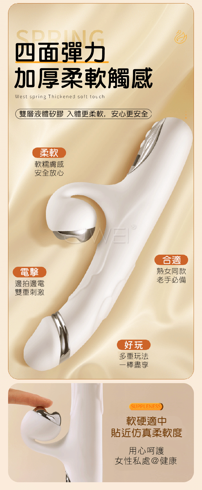天鵝.8頻拍震+8頻微電流電擊 深層高潮仿真龜頭加溫震動棒