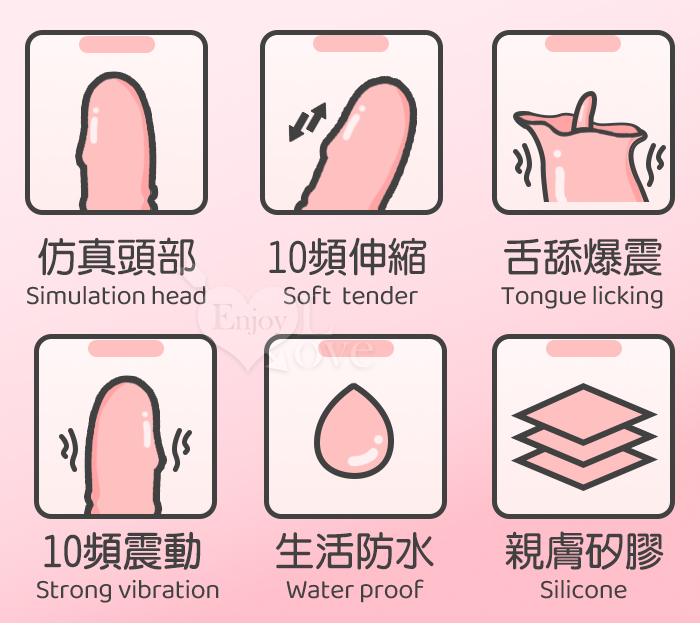 勞樂斯.愛潮~舌吻伸縮多功能按摩棒﹝10頻伸縮+10頻舌撩震+USB便捷充電﹞