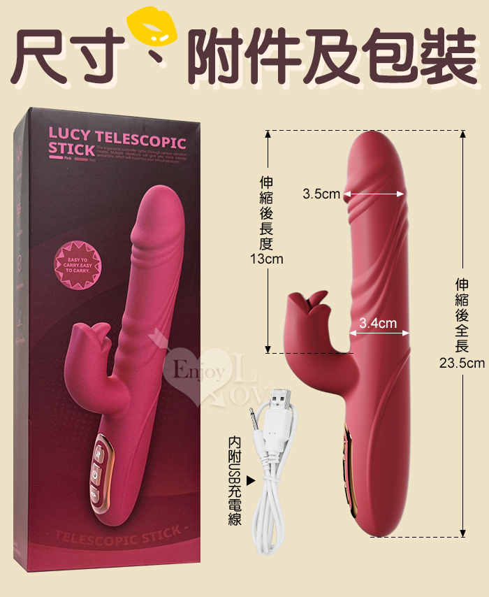 Soul Choice 露西 ‧ 動感10X伸縮10X舔震仿真老二按摩棒﹝衝擊蜜穴+唇舌強震+智能加溫+親膚矽膠+靜音防水/便捷充電﹞紅