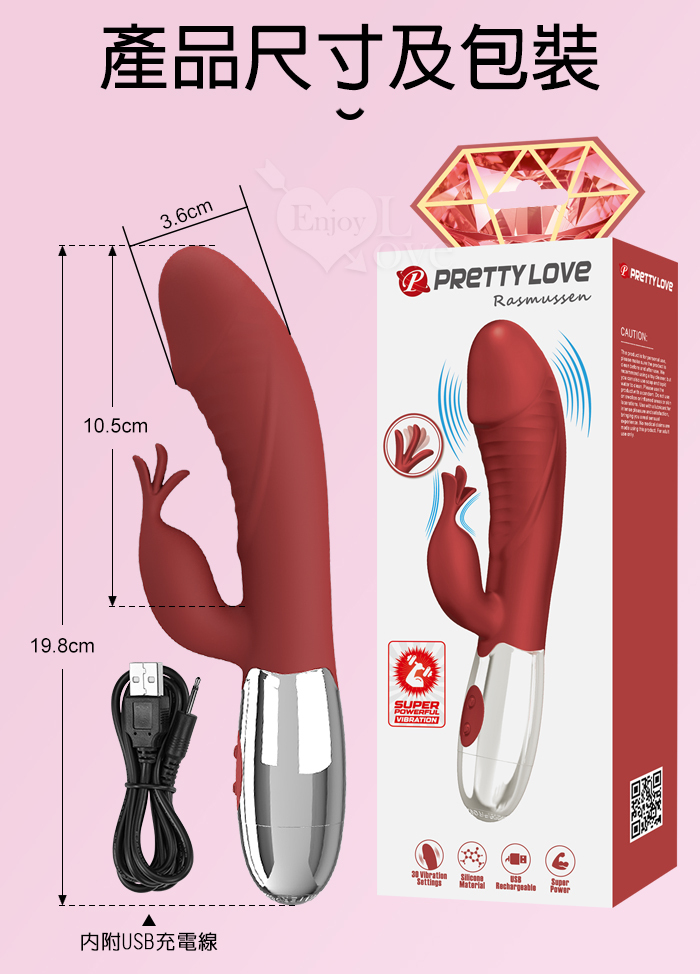 | PRETTY LOVE 派蒂菈 ‧ 飛天鵝 雙重強震 內外同享30頻老二頭按摩棒-充電款 Rasmussen