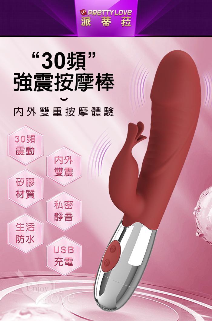 | PRETTY LOVE 派蒂菈 ‧ 飛天鵝 雙重強震 內外同享30頻老二頭按摩棒-洋紅 Rasmussen