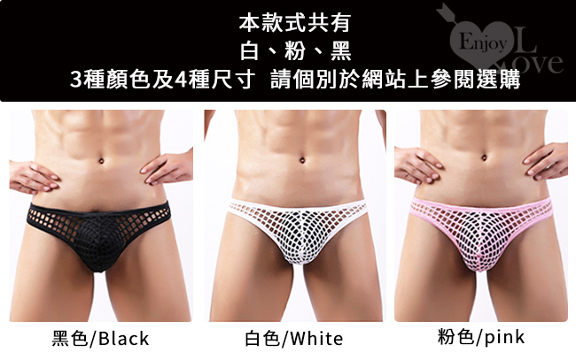| 《 Enjoy Love 》性感半透大網孔男士丁字褲 - 白﹝L﹞