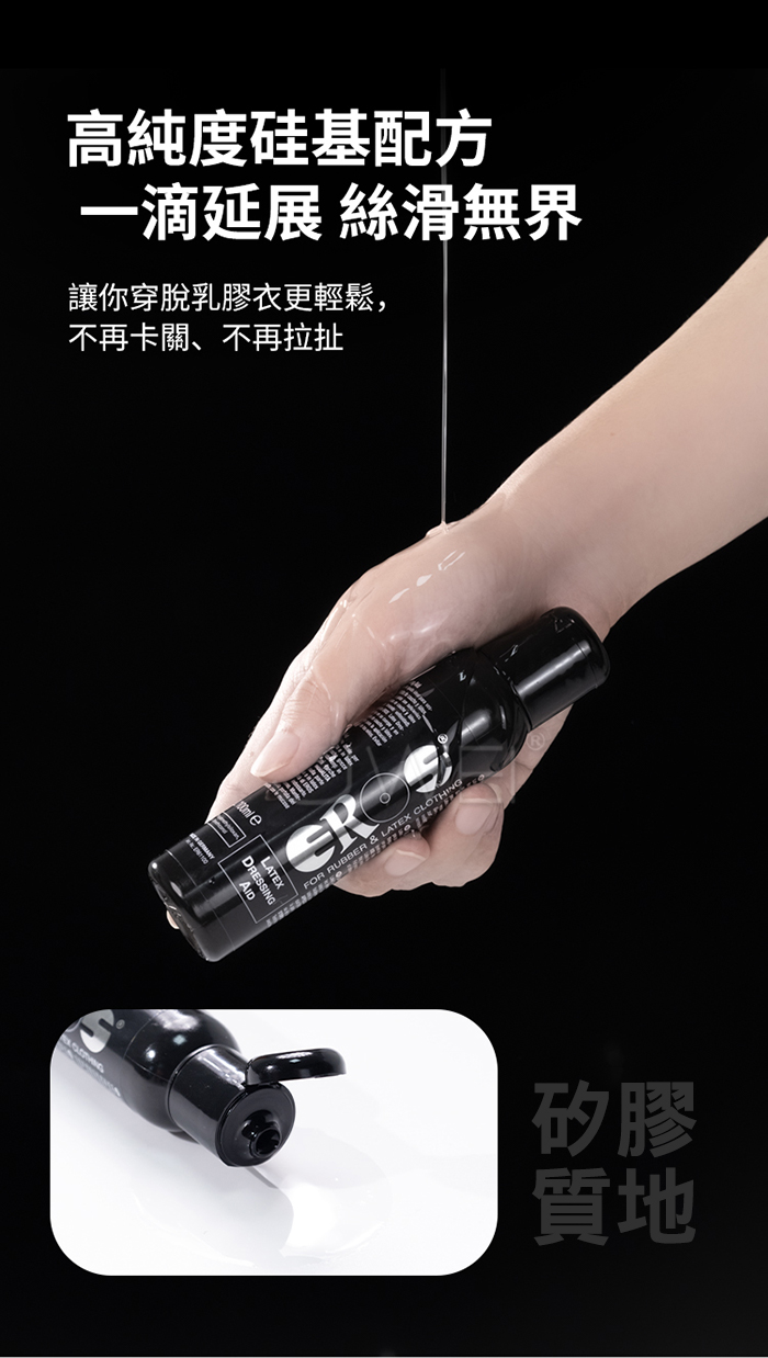 ✔ 獨家潤滑配方,讓乳膠服緊貼不黏膩
