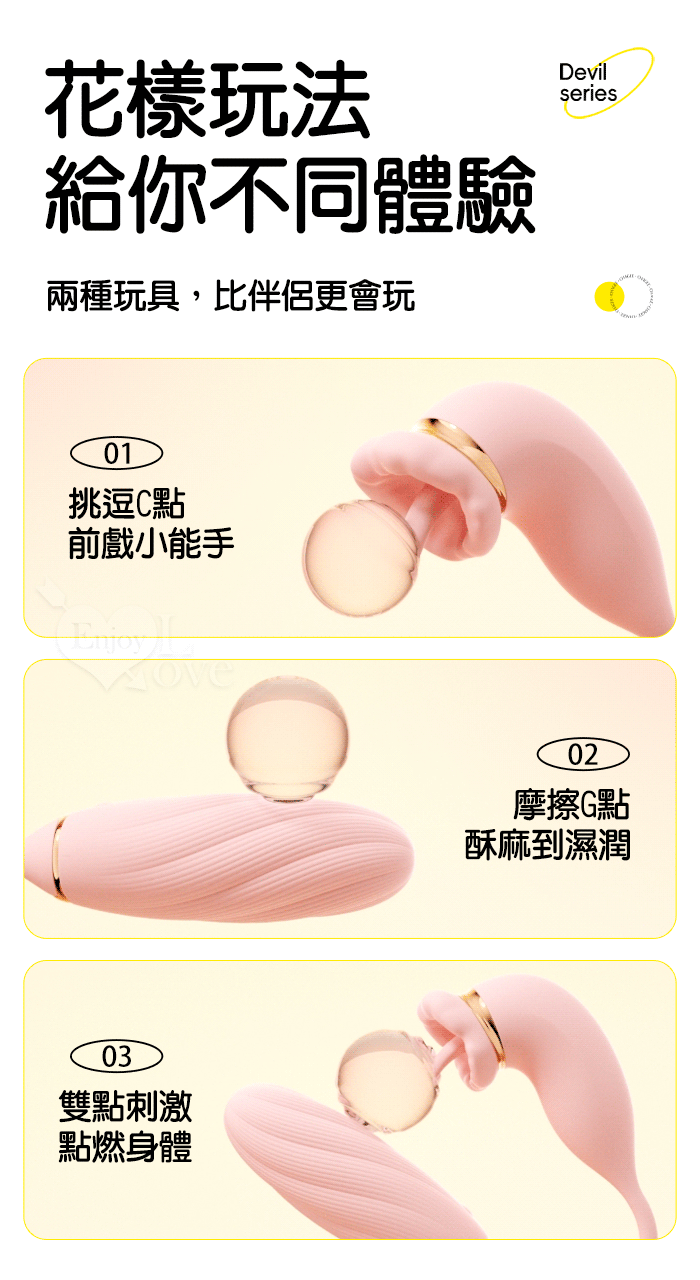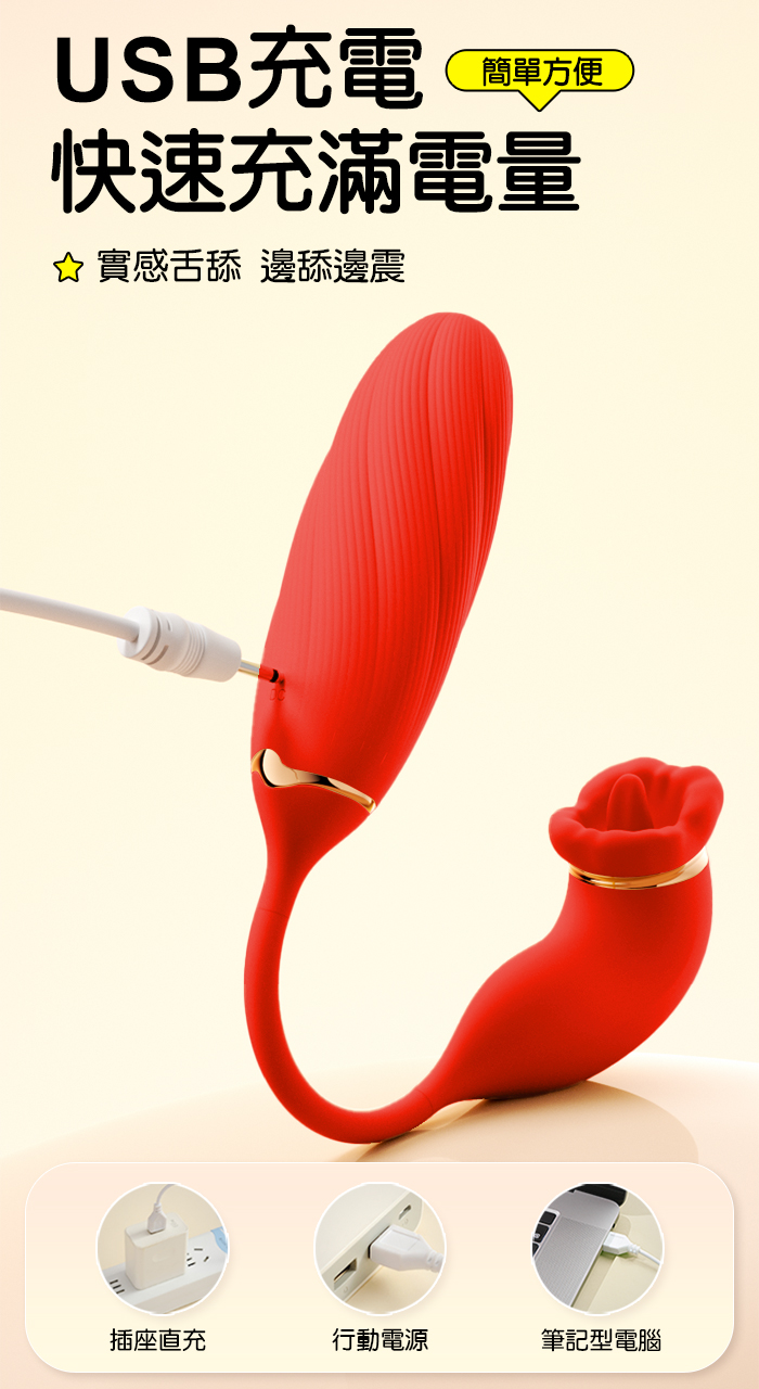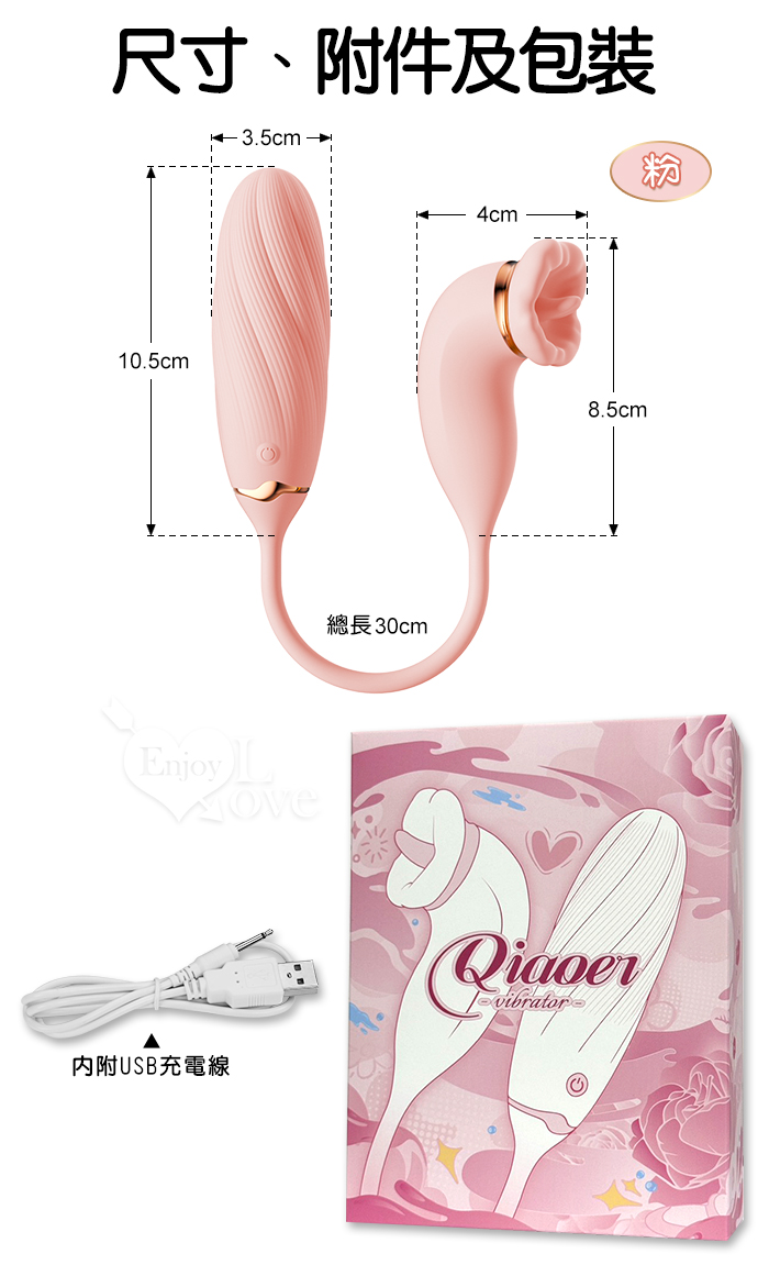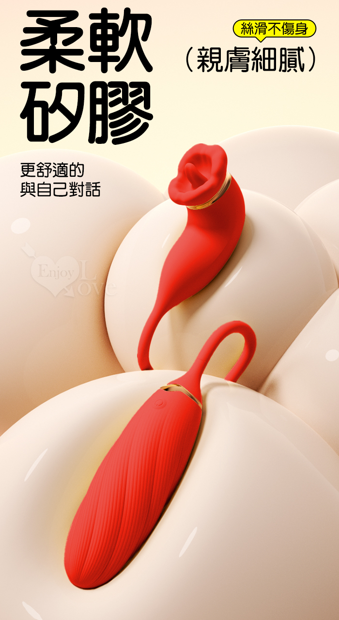 ROSELEX 俏兒 ‧ 魔舌蜜嘴狂撩+長跳蛋 舔震聯手雙組合按摩器﹝花樣玩法/10頻強震/內外同享潮吹/親膚矽膠﹞粉