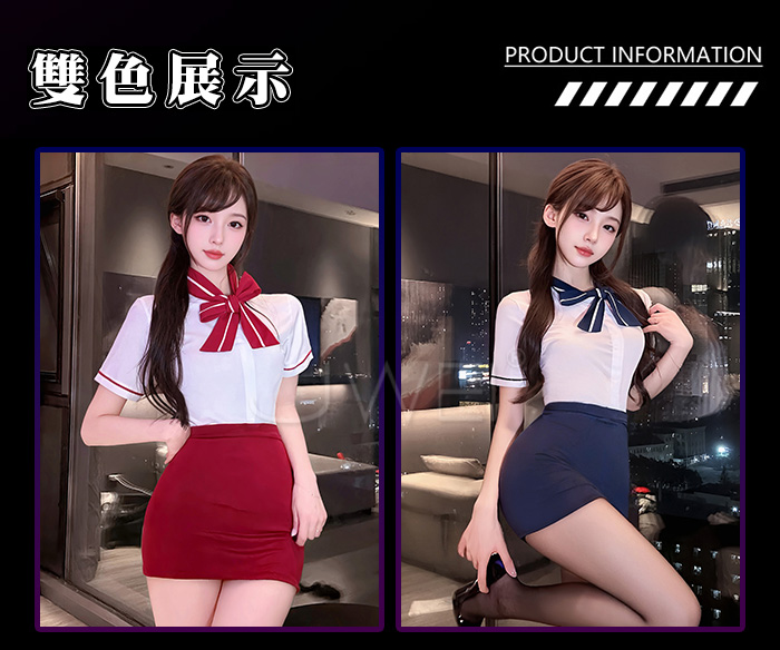 ►您現在的位置:首頁>雲端心機.解扣露溝誘惑修身貼合顯臀禁慾空姐套裝【上衣+裙子+T褲-藍】