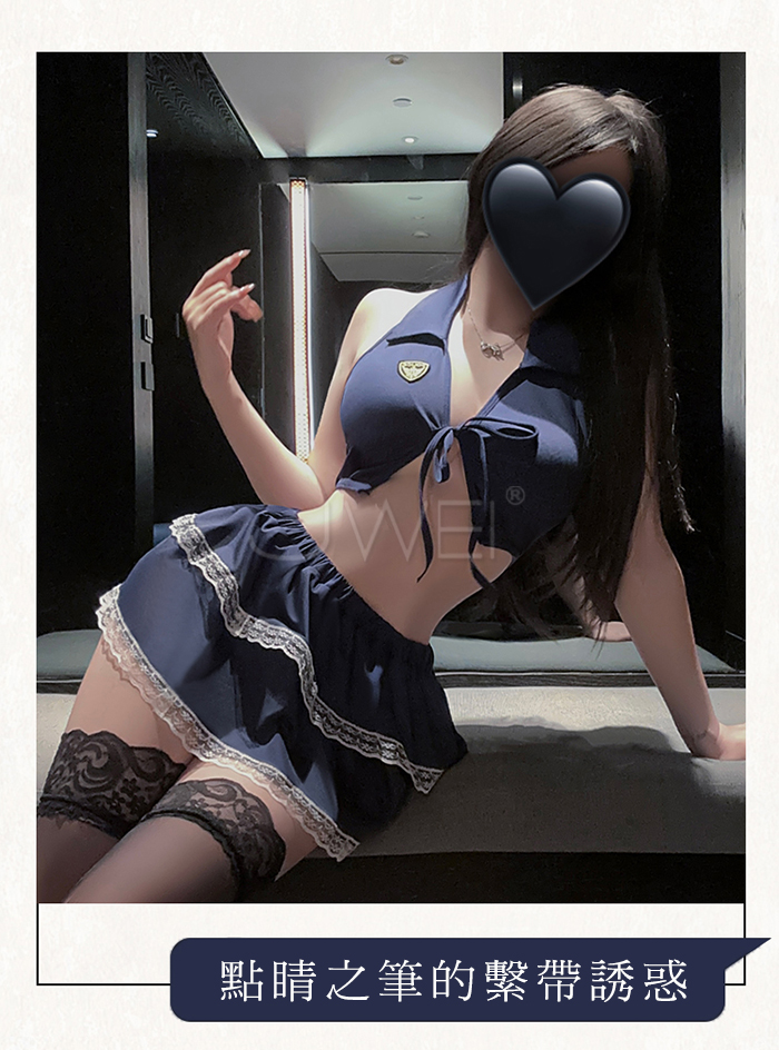 ►您現在的位置:首頁>夜縛魅警.玩味綁帶束胸露背雙層褶裙警花cos套裝【上衣+裙子+T褲】